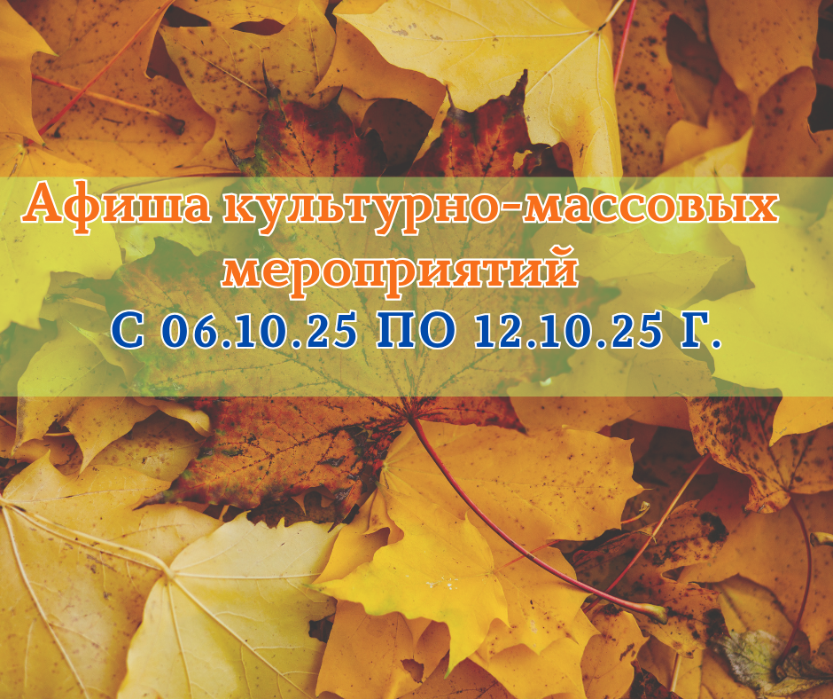 Дорогие друзья! Вашему вниманию представляем программу мероприятий с 06.10.2025 г. по 12.10.2025 г. Проведите время с пользой!