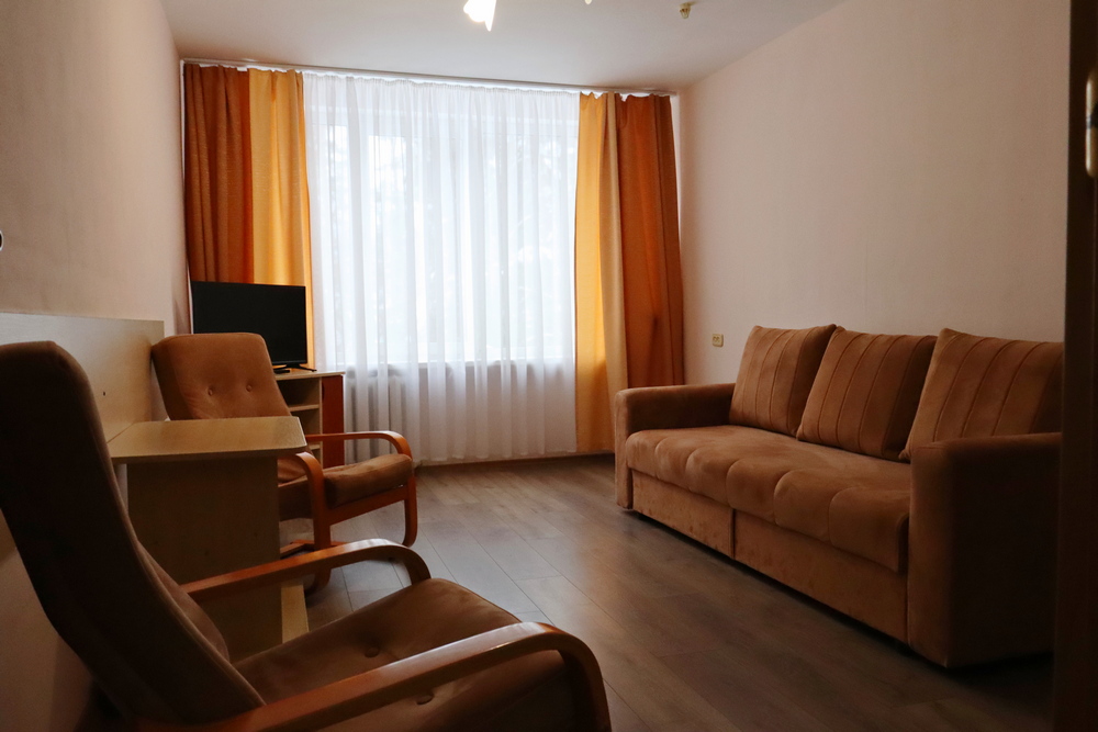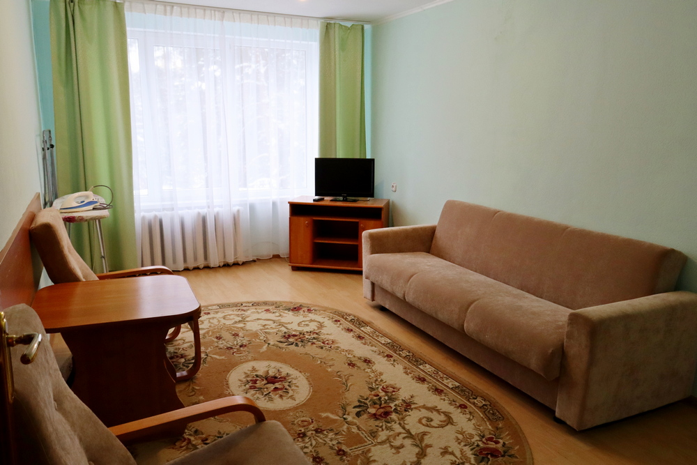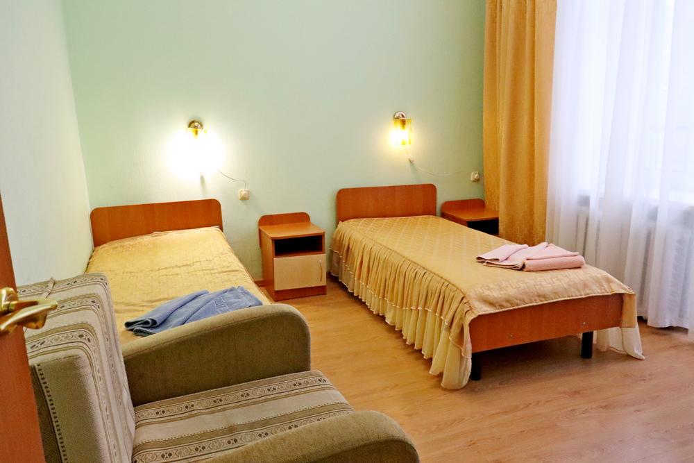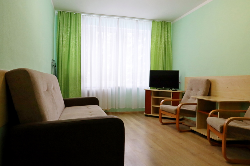 Номера Гостевой домик Апартамент На территории санатория вблизи озера располагается гостевой домик на три двухместных номера Гостевой домик Апартамент 1 этаж:гостинаяспальнядетская комнатасовмещенный санузел2 этаж:гостинная2 спальни2 совмещенныхсанузлакондиционертелевидениеWi-Fi Корпус №12-комнатный2-местныйFamily room (5 этаж) прихожаягостинаяспальнякухняраздельный санузелтелевидениеWi-Fi Корпус №12-комнатный2-местный Family room(4 этаж) прихожаягостинаяспальнякухняраздельный санузелтелевидениеWi-Fi Корпус №12-комнатный 2-местный Family room (1, 2, 3 этажи) прихожаягостинаяспальнякухняраздельный санузелтелевидениеWi-Fi Корпус №21-комнатный1-местный Single прихожаяжилая комната на 1 местосовмещенный санузелтелевидениеWi-Fi Корпус №21-комнатный2-местный 1 категории (1, 4 этаж) прихожаяжилая комната на 2 местасовмещенный санузелтелевидениеWi-Fi Корпус №21-комнатный2-местный 1 категории (3 этаж) прихожаяжилая комната на 2 местасовмещенный санузелтелевидениеWi-Fiмини-холодильник Корпус №21-комнатный2-местный Twin (2,3 этаж) прихожаяжилая комната на 2 местасовмещенный санузелтелевидениеWi-Fi Корпус №21-комнатный2-местный Тwin (5 этаж) прихожаяжилая комната на 2 местакресло-кровать (доп.место)совмещенный санузелтелевидениеWi-Fiмини-холодильникфен Корпус №21-комнатный2-местный Double (5 этаж) прихожаяжилая комната на 2 местасовмещенный санузелдвухспальная кроватьтелевидениеWi-Fiмини-холодильник Корпус №21-комнатный2-местный Family room (5 этаж) прихожаяжилая комната на 2 местаДвухспальная кроватьдиван (2 доп.места)совмещенный санузелтелевидениеWi-Fiмини-холодильник Корпус №32-комнатный2-местный Twin прихожаягостинаяспальнясовмещенный санузелтелевидениеWi-Fi Корпус №33-комнатный2-местный"Люкс" прихожая гостиная комната отдыха спальня кухня ванная комната туалет телевидение Wi-Fi Корпус №32-комнатный2-местный Family room прихожая гостиная спальня совмещенный санузел телевидение Wi-Fi Лечебный корпус1-комнатный2-местный 4 категории жилая комната на 1 место с частичными удобствами (на этаже)телевидениеWi-Fi